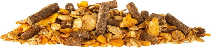 Hőkezelt árpapehely, hőkezelt kukoricapehely, hőkezelt szója, extrahált lenmagdara, cukorrépa melasz, almatörköly, búzakorpa, élesztő, kalcium-karbonát, kukorica-fehérje, Ca-Na-foszfát, nátrium-klorid, szukróz.