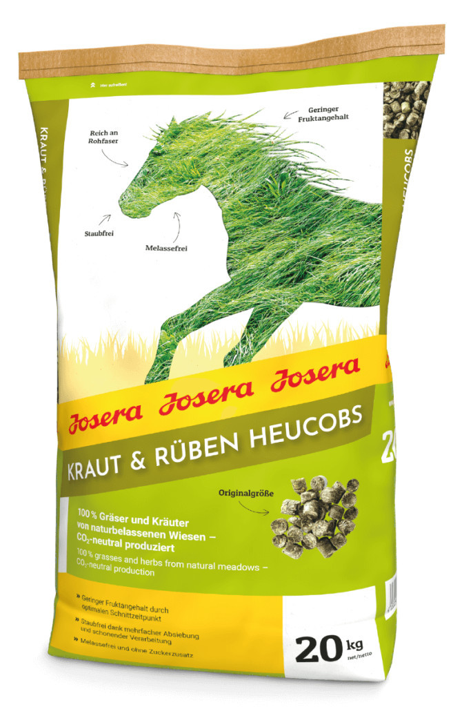 Alaptakarmány-kiegészítőként (meglévő szénaadag kiegészítésére): 1 kg Josera Kraut & Rüben szénakocka 1 kg szénát helyettesít.