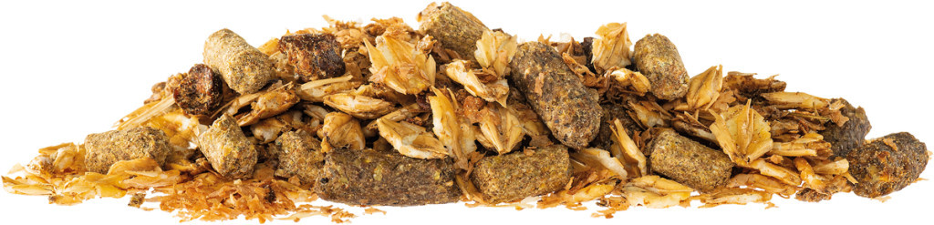 Hőkezelt árpapehely, hőkezelt lenmag, búzakorpa, almatörköly, előkezelt búzaliszt, cukorrépa melasz, kukorica olaj, nátrium-klorid, kalcium-karbonát, árpa, kukorica, Ca-Na-foszfát, magnézium-oxid, lecitin.