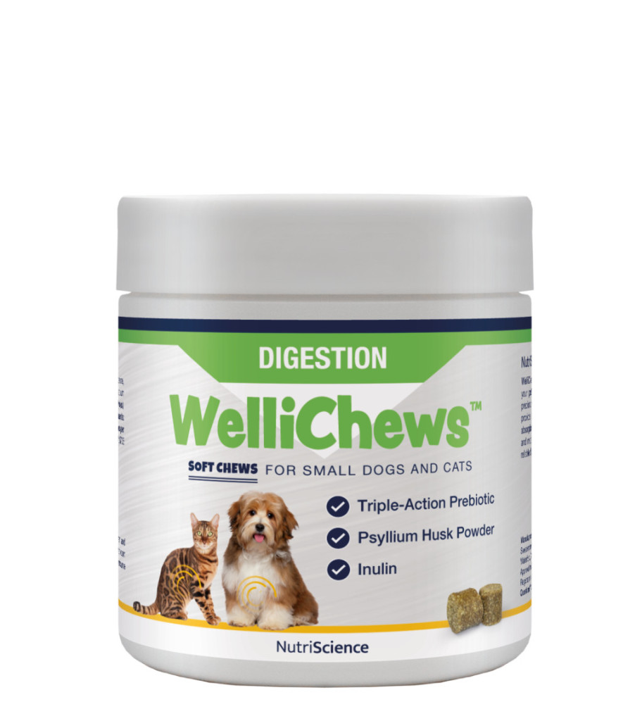 Rizskorpa, tápióka, burgonya, finomított növényi olaj (repce, napraforgó), glicerin, élesztő termékek, magnézium-sztearát, inulin (Cichorium intybus), útifűmaghéj (Psyllium husk), sütőtökmag, aktívszén, NaCl, glükóz-oligoszacharid. Tápértékkel rendelkező adalékanyagok/kg: Vitaminok: 3a300 C-vitamin 5.640mg. Zootechnikai adalékanyagok/kg: Bélflóra stabilizátorok: 4b1705 Enterococcus faecium 9,8 x 1011 CFU.